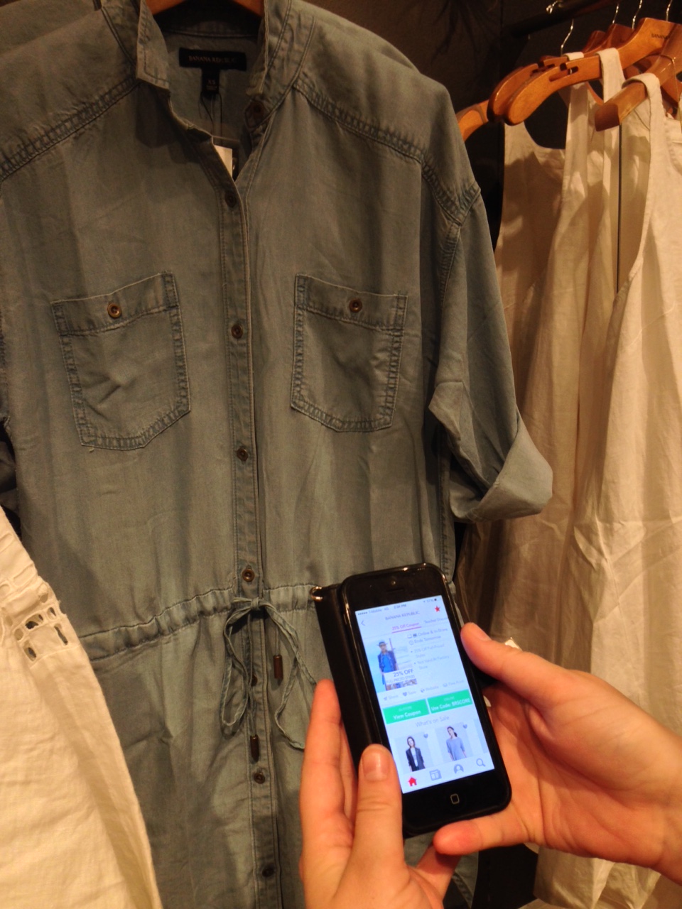 I LOVED this shirt dress at Banana Republic…but at over $100, it was not within my price range. A quick look at Shopular showed me that Banana Republic was running a sale, and even gave me the online code and coupon barcode. Easy button!