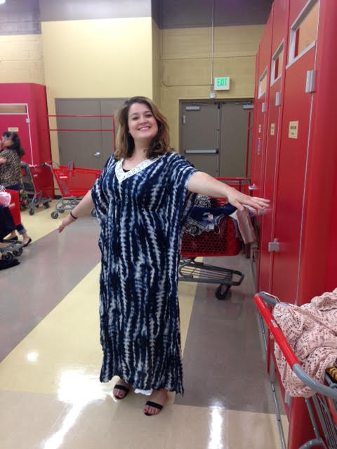 Found a bunch of great maxi dresses in my size including this printed spaghetti strap maxi, this blue hi-low hem Target dress perfect for summer vacation and this cool ocean-wave looking caftan that is DEFINITELY coming with me to the beach this weekend and fits PERFECTLY with my blue, white and red theme!