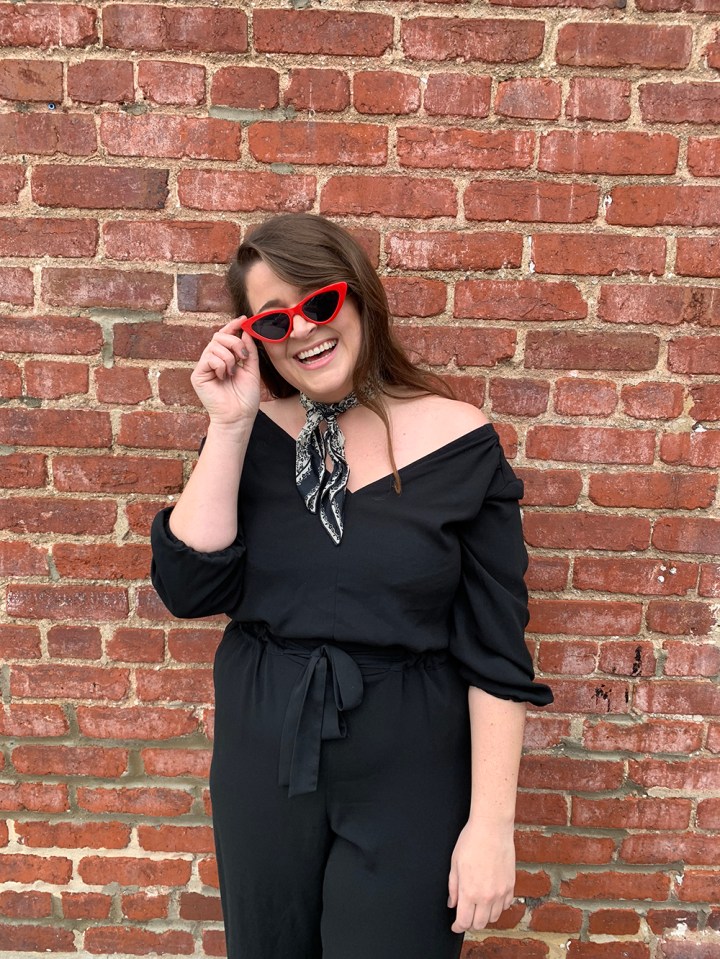 When I found this jumpsuit at Target (A New Day Line) I knew I’d found a forever friend. Not only is it classic black, it also has all the curvy girl necessities: A shallow V-neckline, cinching in the waist, plenty of room for those hips, and a balanced wide leg. Plus…this baby has POCKETS!